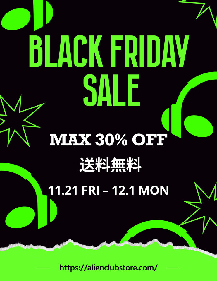 現在Alien Club StoreはBLACK FRIDAY SALEを開催中!