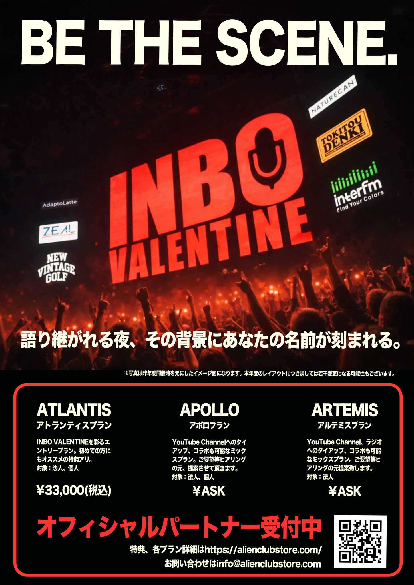 Dave Fromm Channelのメンバーが毎年開催する恒例のトーク&ライブイベント「INBO VALENTINE」。3/30(月)に開催される本イベントのステージ上特大LEDパネルにロゴやお名前を表記しPRが可能になりました!INBO VALENTINEのサポートを通じて貴社(商品名、お名前)の存在を熱狂の夜に深く刻み込みます 。